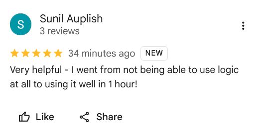 The client was so pleased that he left a fantastic review: “Very helpful – I went from not being able to use logic at all to using it well in 1 hour!”