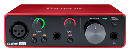 • Optimal Gain Staging: I showed him how to set the ideal gain level on his Scarlett Solo and recommended engaging the “Instrument” button. This crucial step activates the high-impedance (Hi-Z) mode, which is essential for recording electric guitars and ensures a high-quality signal.